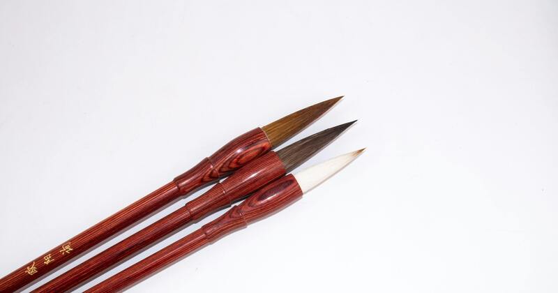 * **Ink:** Pointy, lets the ink flow smoothly, and often made of fine synthetic hair. Usually liner, round, or calligraphy brushes.